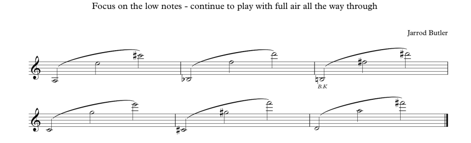 Playing up in to the altissimo register of the clarinet should be as easy as low notes. Young players will often work themselves up to squeeze out top E’s and F’s. Use this exercise to remind yourself that the quality of any high note is always determined by the quality of the low note (fundamental)